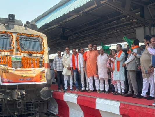 इस विशेष ट्रेन को केंद्रीय मंत्री श्री तोखन साहू ने हरी झंडी दिखाकर रवाना किया। इस अवसर पर राजेश चंद्रवंशी, मंडल रेल प्रबंधक राकेश रंजन, वरिष्ठ मंडल वाणिज्य प्रबंधक अनुराग सिंह, जिला पंचायत सीईओ बिलासपुर संदीप अग्रवाल सहित अन्य जनप्रतिनिधि एवं अधिकारीगण भी उपस्थित रहे।