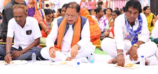 मुख्यमंत्री श्री विष्णु देव साय आज राजधानी रायपुर के शंकरनगर स्थित दुर्गा मैदान में डॉ. भीमराव आंबेडकर की 135वीं जयंती के अवसर पर आयोजित समरसता भोज कार्यक्रम में शामिल हुए। इस दौरान मुख्यमंत्री श्री साय ने जनप्रतिनिधियों और आमजन के साथ बैठकर भोजन किया तथा स्वयं लोगों को भोजन परोसकर सामाजिक समरसता का संदेश दिया।