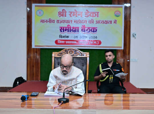 राज्यपाल श्री रमेन डेका ने रविवार को जिला पंचायत के सभाकक्ष में जिला स्तरीय अधिकारियों और जशपुर विकासखंड के अधिकारियों की समीक्षा बैठक ली। उन्होंने पर्यावरण संरक्षण और संवर्धन के लिए अधिक से अधिक पेड़ लगाने के लिए प्रोत्साहित किए एक पेड़ मां के नाम अभियान का बेहतर क्रियान्वयन करने के निर्देश दिए हैं।